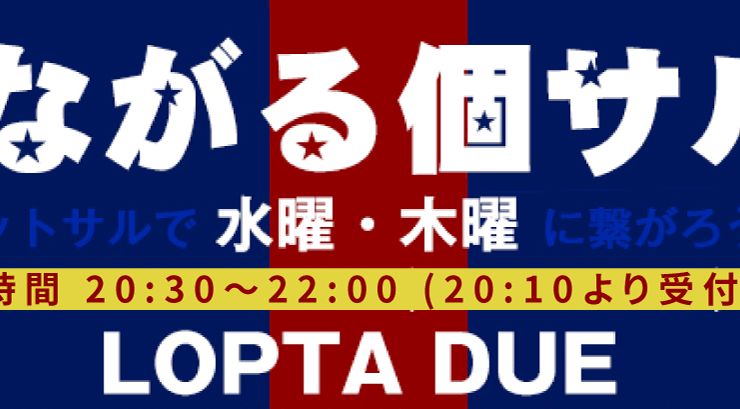 つながる個サル。水木、個人フットサル開催!!★初心者大歓迎...